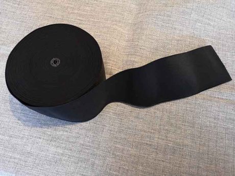 100mm/10cm wide stiff black waistband elastic. Use for deep elasticated waistbands, belts or cuffs. Also suitable for memorial armbands for sporting events, etc.