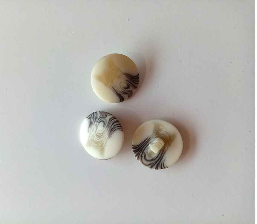 We love these smooth cream-coloured, slightly domed, shank buttons with black marble effect. Lovely for hand knits or summer clothes. 23mm.