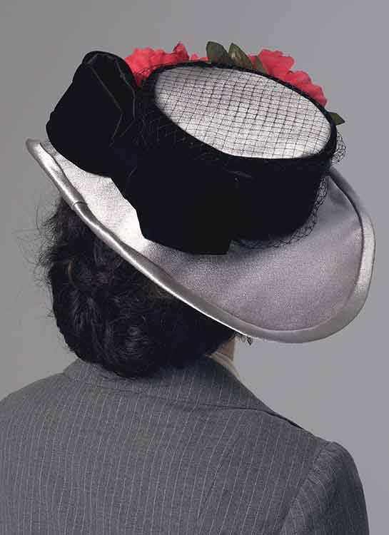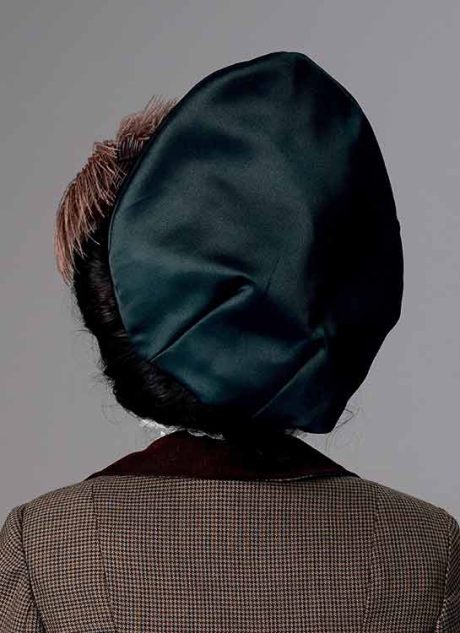 Vintage-inspired hats, views A, B and C: XS, S, M, and L. Beret A, contrast decorative knot. Pillbox B, contrast bow and binding. Hat C, contrast bow and drape. Hat D, brim stand and contrast under-brim. All views are lined and have purchased embellishments.