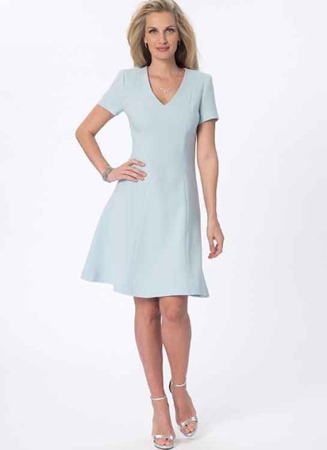 Dresses (fitted through bust) have neckline variations, princess seams, stitched hems & invisible back zipper.