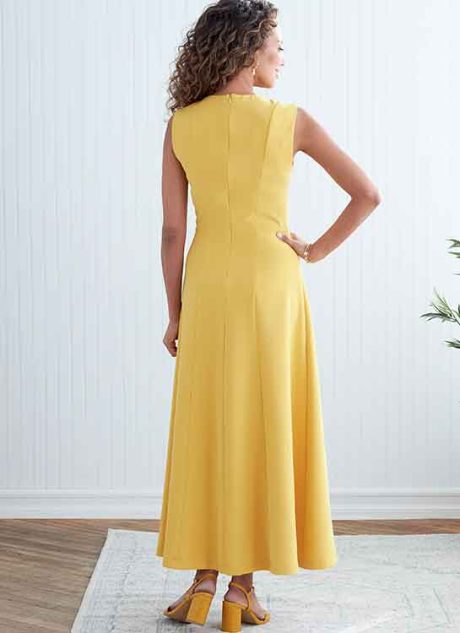 Dresses (fitted through bust) have neckline variations, princess seams, stitched hems & invisible back zipper..
