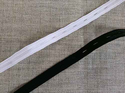 Special elastic constructed with evenly spaced buttonholes along its length. Use where adjustments to garments are required. A whole host of uses, but particularly great for kids’ clothes and maternity wear. Available in black and white.