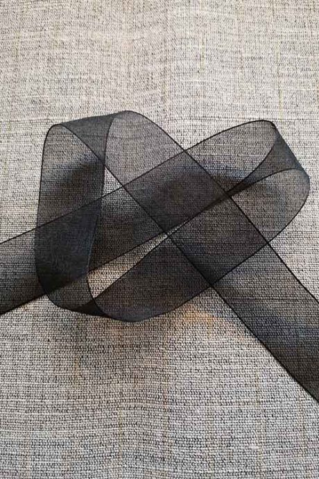 Exquisitely soft, sheer organza ribbon, beautiful used as a trim on clothing or craft items. 25mm. Black only.
