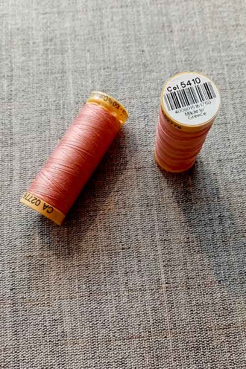 Dusty salmon pink Gutermann cotton thread. Gutermann Creativ 100% mercerised cotton threads are the all-rounders among natural threads. They are exceptionally strong and have a naturally lustrous appearance. The softness of the natural thread allows for a smooth and even seam. 100m.