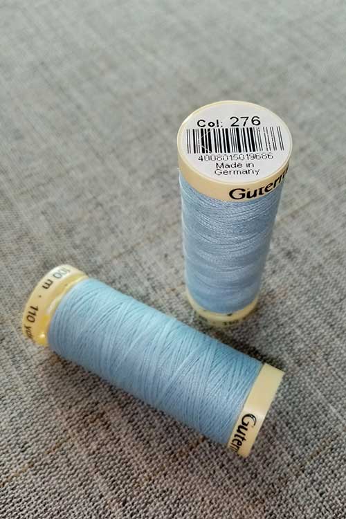 Pale Blue Sew All Thread, 100m. 100% polyester. Suitable for all fabrics, for hand and machine sewing. Guaranteed knot-free.
