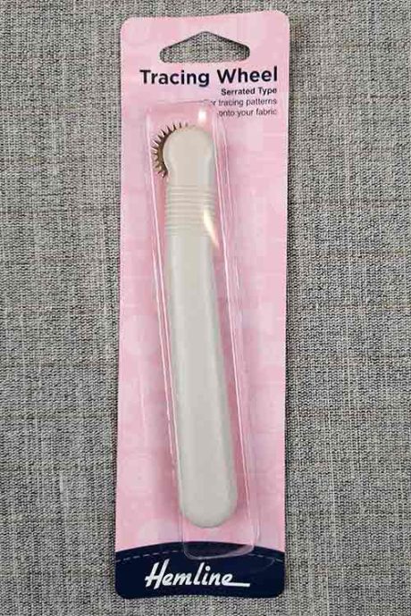 For transferring pattern lines to paper or fabric. The toothed tracing wheel draws dotted lines on the material or pattern paper. Use with carbon paper for fabric or without for tracing paper patterns.