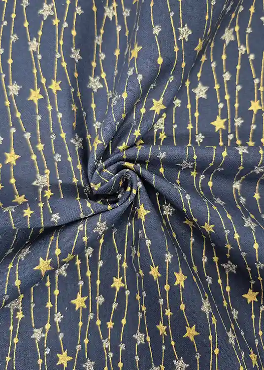 A delicate shower of silver and gold stars on a navy blue background from John Louden’s fantastic festive range of 110cms wide 100% Cotton Christmas Cotton Prints. Lots of designs for all tastes and applications. For your gift and home décor ideas.