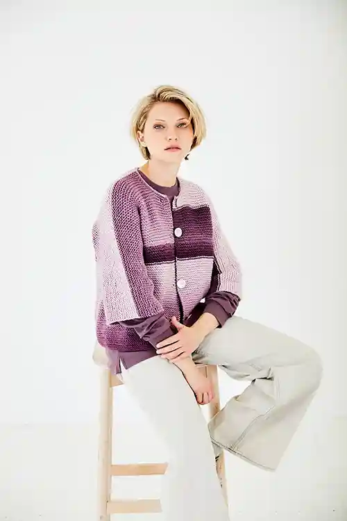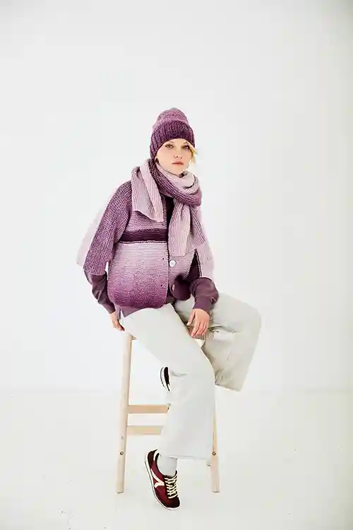 Ladies’ Up and Over Cardigan, Hat and Scarf designed for Horizon Chunky yarn. Meet our brand-new obsession: Horizon Gradient Yarn! Each oversized 200g cake is a work of art, featuring a perfectly balanced, single pattern repeat that melts from rich, deep tones to the softest, lightest tints. The result? Gorgeous, dip-dyed effects that make every project look effortlessly stunning. This luxurious acrylic-wool blend isn’t just beautiful it’s practical too. The generous cake format shows off every shade in the gradient, so you know exactly what magic is waiting inside. Horizon is the yarn that will transform your makes into masterpieces.