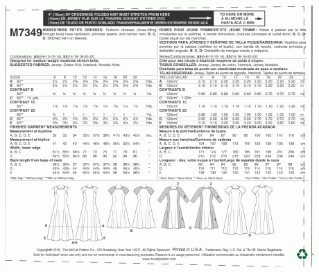 Pullover fit and flare dresses (close-fitting through bust) have neck band, princess seams, raglan sleeves and narrow hem. B, C, D: Stitched hem on sleeves. A, E: Sleeveless. B, D: Short sleeves. C: Three-quarter length sleeves. For moderate stretch knits only. Jerseys, Cotton Knit, Interlock, Novelty Knits. Designed for medium-weight moderate stretch knits. Easy