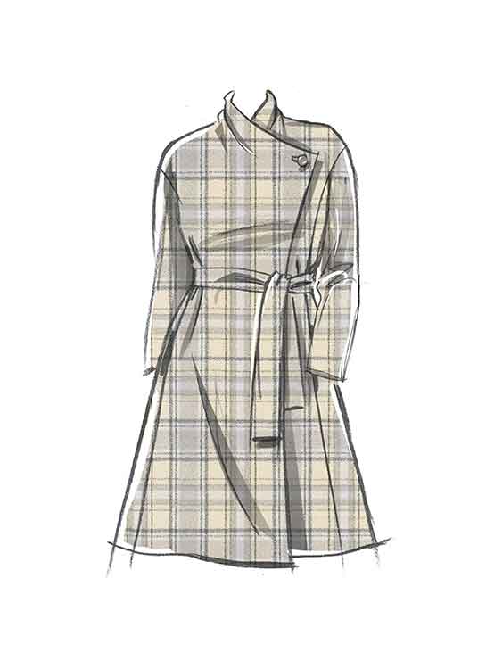 High collar coat and vest have dropped shoulders, side panels, pockets and belt. Boiled Wool, Flannel, Wool Blends, Wool Flannel. Lining: Lining Fabrics. Interfacing: Lightweight Fusible. Sewing level: AVERAGE.