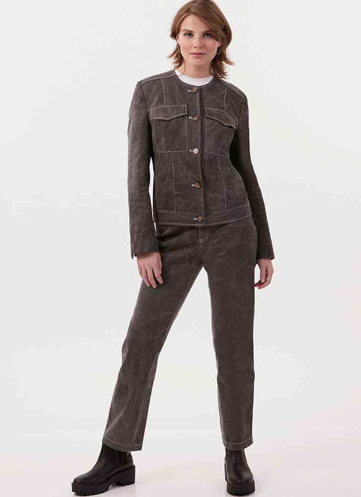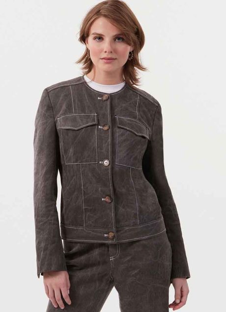 Melissa Watson for Palmer/Pletsch jacket has large front pockets with flaps, front button closure, back yoke and long two-piece sleeves with buttons. Make it an outfit with the matching pants M8473. Cotton Blends, Denim, Linen, Twill. Lining: Lining Fabric. Interfacing: Lightweight Fusible. Sewing level: Average. Melissa Watson
