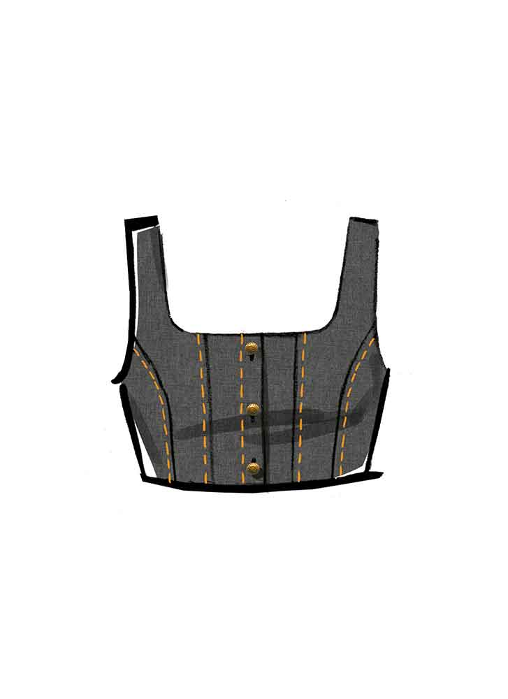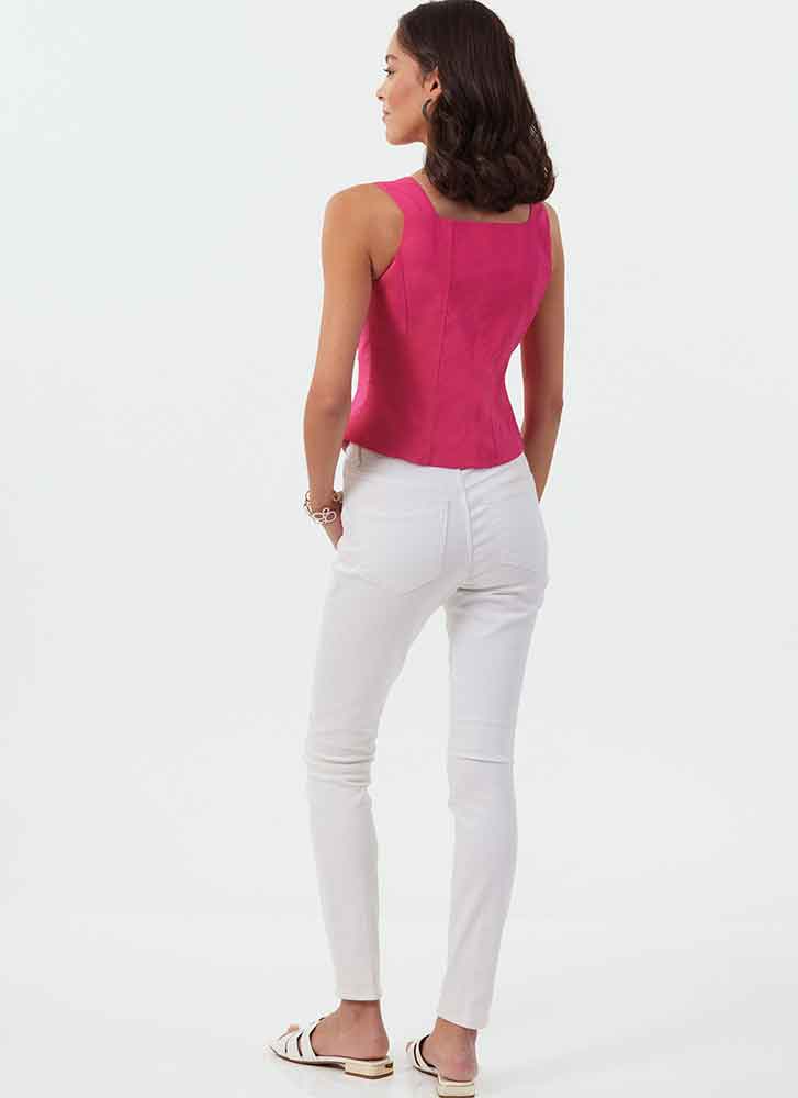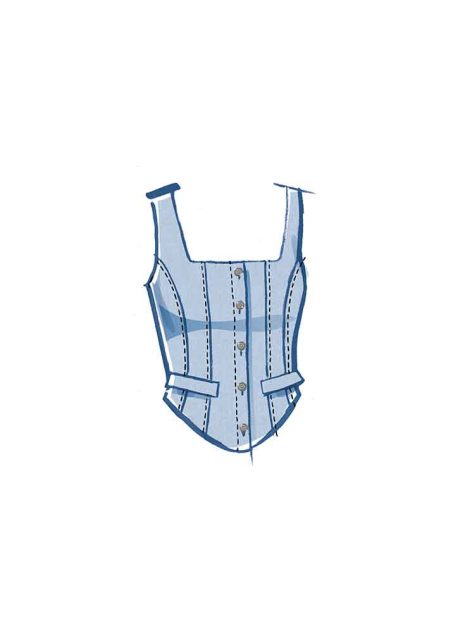 Figure-flattering and fitted, corset-style cropped tops have front button closure, square neckline and topstitching details. View B has faux pockets. Chambray, Denim, Linen, Twill. Lining: Cotton Blends, Lining Fabrics. Interfacing: Lightweight Fusible. Sewing level: Average.
