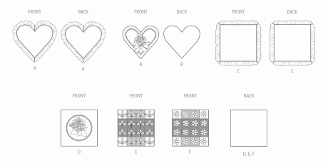 Pretty pillows in heart or square shapes can be made with matching fabric ruffles or braid trim and three-dimensional hydrangea flowers secured with beaded petal centers. Heart pillow has ribbon bow accent; square pillow has appliqued leaves. Square patchwork pillows with mini puffball trim accents on seams can be embellished with dimensional sprigs or flowers with pom pom centers. See envelope for more information. Chintz, Corduroy, Cotton Types, Flannel, Linen Types. Petals B,D,E, Leaf Applique D, and Flowers F in Felt, Wool Felt. Padding: Fleece. Sewing level: Average.