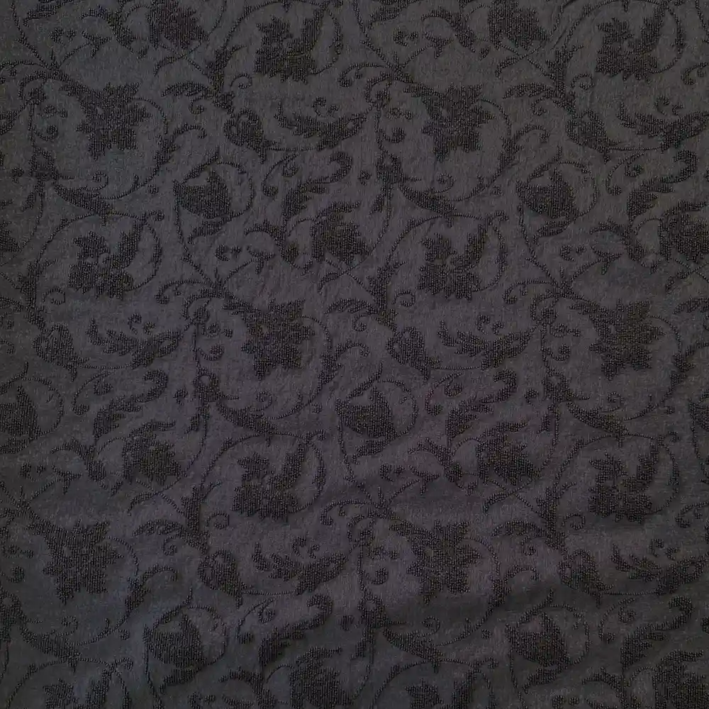 Elegant matt black easy-sew self-patterned jacquard. Would work well for dresses, pants, jackets, tops, or skirts. Width 125cm. Composition: 52% polyamide, 4% elastane, 44% cotton
