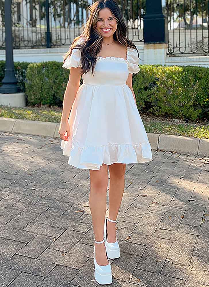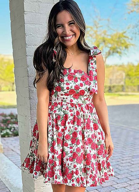 Baby doll dress with short puff sleeves or wide tie straps has lined bodice, bust darts, built in tulle petticoat to give the skirt volume, center back zipper and ruffle details on the neckline and skirt hem. Cotton Blends, Cotton Lawns, Gauze, Gingham, Poplin, Seersucker, Silk, Silky Types, Viscose. Petticoat Ruffle: Tulle. Lining: Cotton Blends, Polyester Blends Interfacing: Lightweight Fusible.. Sewing level: AVERAGE. ALISSAH THREADS