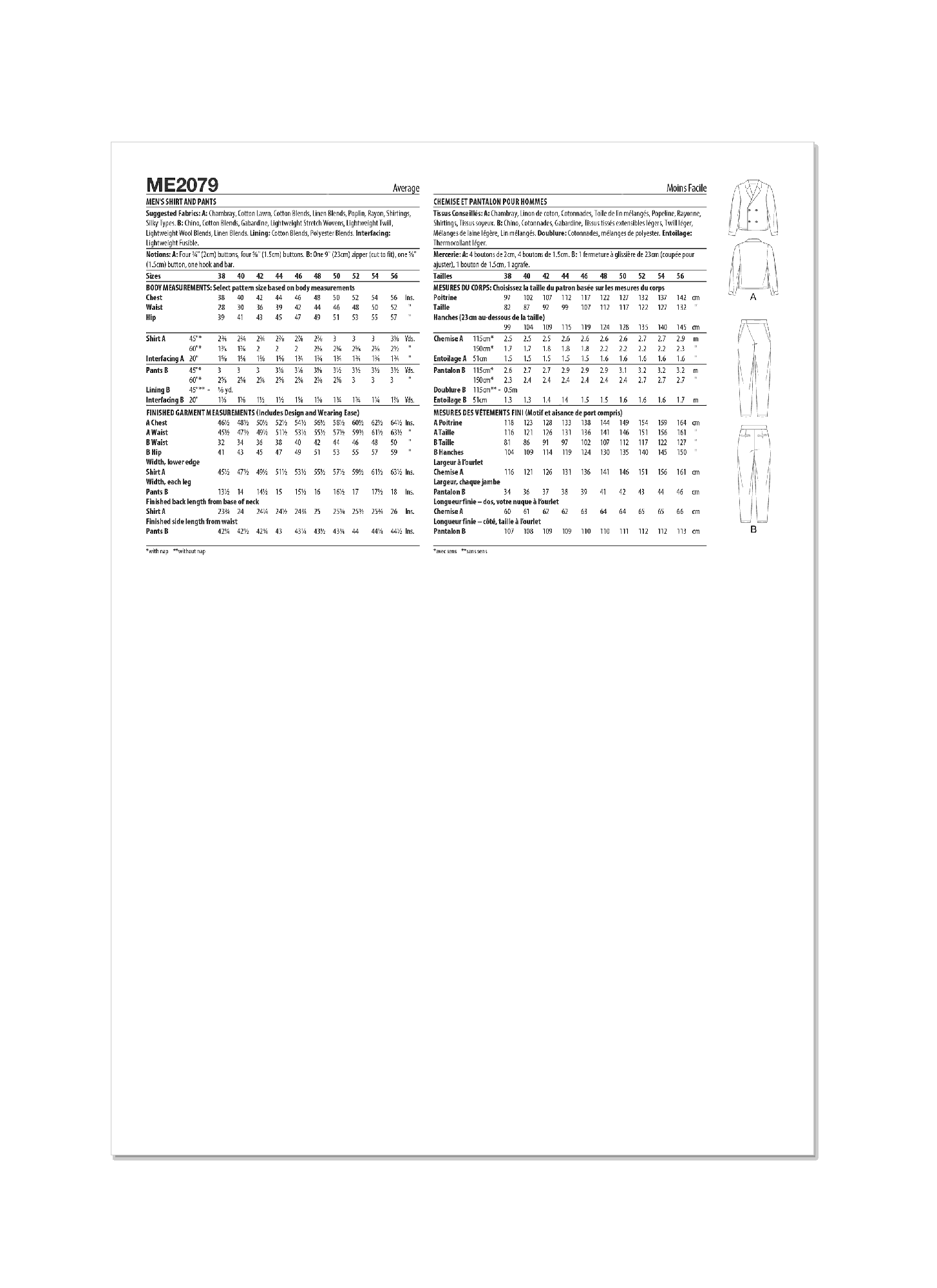 Double breasted loose fit shirt with collar, long sleeves with cuffs and button detail. Asymmetric fly pants have hidden hook and eye closure, back darts and double welt pockets. Chambray, Cotton Lawn, Cotton Blends, Linen Blends, Poplin, Rayo
