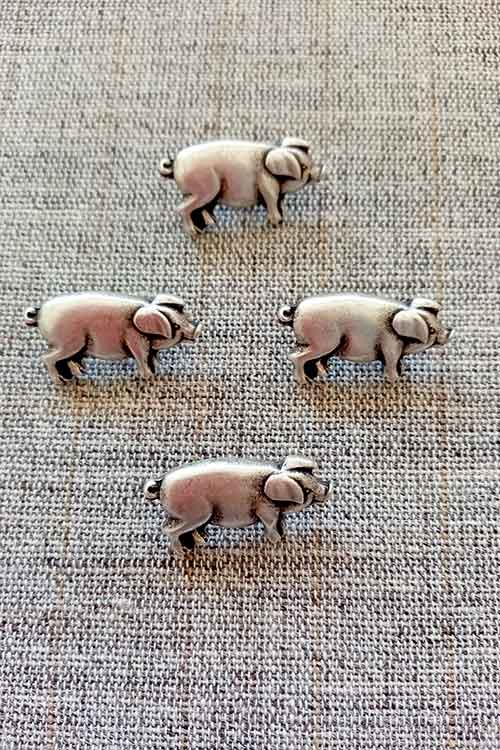 I fell in love with these little metal piggies. Wouldn’t they look lovely on a plain wool jacket? You’re sure to find a special use for them. Approx 20mm. Sold individually. Price per button.