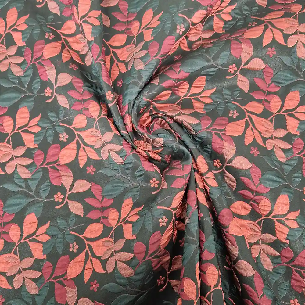 Be the first to review “Poly cotton jacquard with leaf design (cranberry/bottle green)”