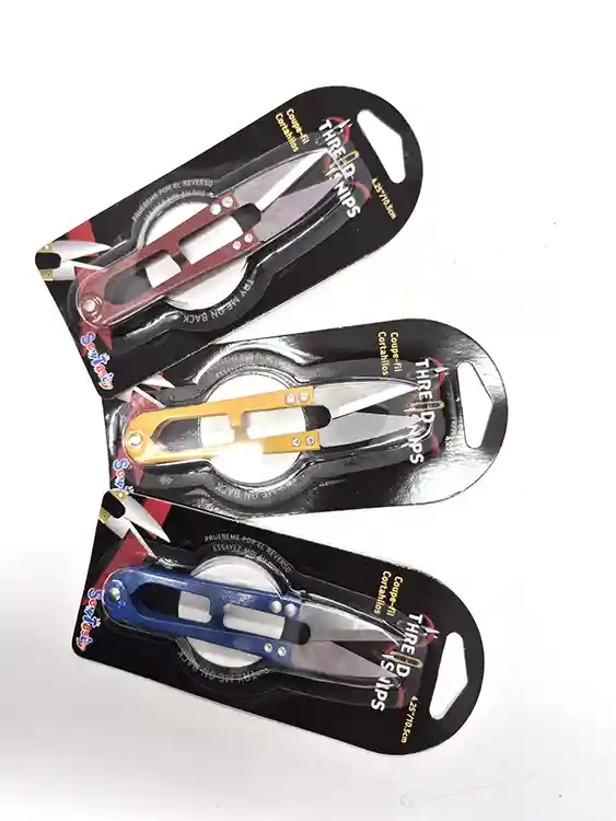 Simplified ergonomic design with sharp blades to enhance cutting performance and coloured metal sprung grips. Inexpensive alternative to embroidery scissors, if you only need them to snip threads. 10.5cm/4.25″ overall length.