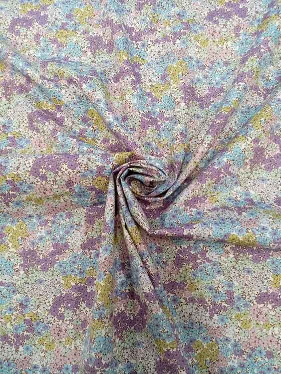Rose & Hubble’s fantastic cotton poplin featuring an abundance of delicate, pastel-coloured flowers in pale turquoise and green, with lilac highlights. With a soft, smooth handle and great drape this fabric is ideal for quilting, craft and clothing applications. 110cm wide. 130gsm. Oeko-Tex Standard 100 certified.