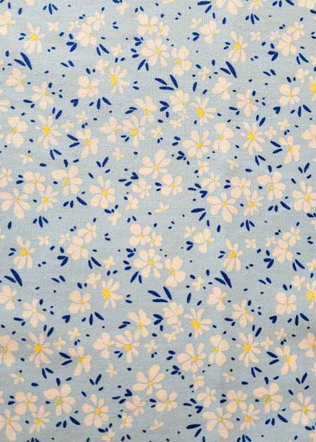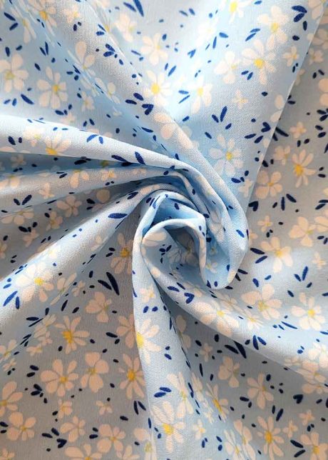Rose & Hubble’s fantastic cotton poplin with a shower of white daisy-like flowers on a sky blue background. With a soft, smooth handle and great drape this fabric is ideal for quilting, craft and clothing applications. 110cm wide. 130gsm. Oeko-Tex Standard 100 certified.