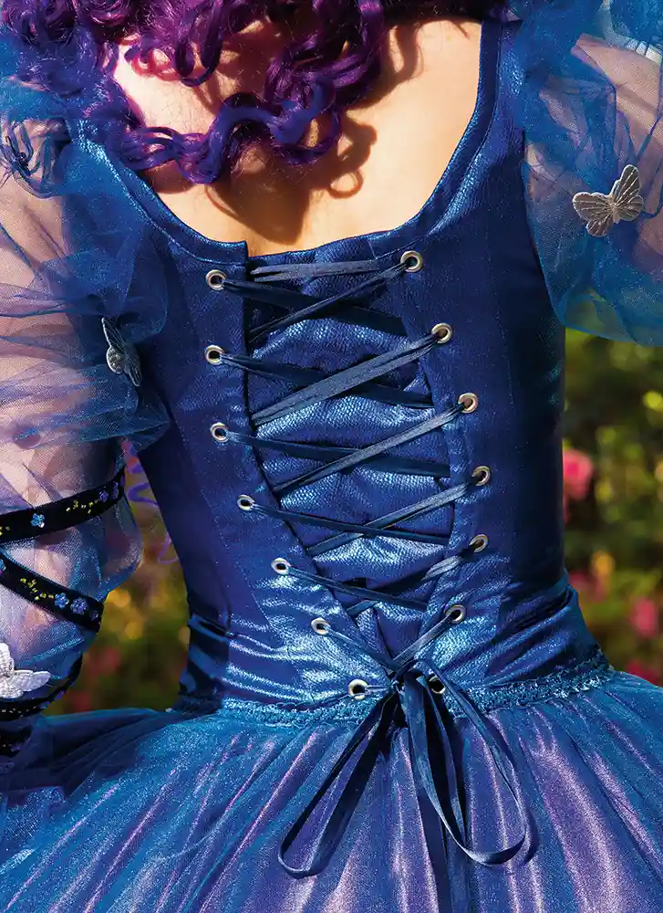 Fanciful two-piece costume begins with lined, boned corset with back lacing, dramatic leg-o-mutton sleeves in airy tulle fabric and assorted embellishments including appliqued lace, ribbon rosettes, novelty motifs, embellished ribbon, and decorative faux front lacing. Full gathered floor-length skirt has waistband, back zipper and two tulle overskirts. See envelope for more information. Bodice and Contrast 1 in Dupioni, Satin, Shantung, Taffeta, Tissue Lame. Bodice also in: Brocade, Velvet. Contrast 2,3: Tulle (in two coordinating colors). Interlining: Cotton Duck, Twill. Interfacing: Lightweight Fusible. AVERAGE. Raine Emery