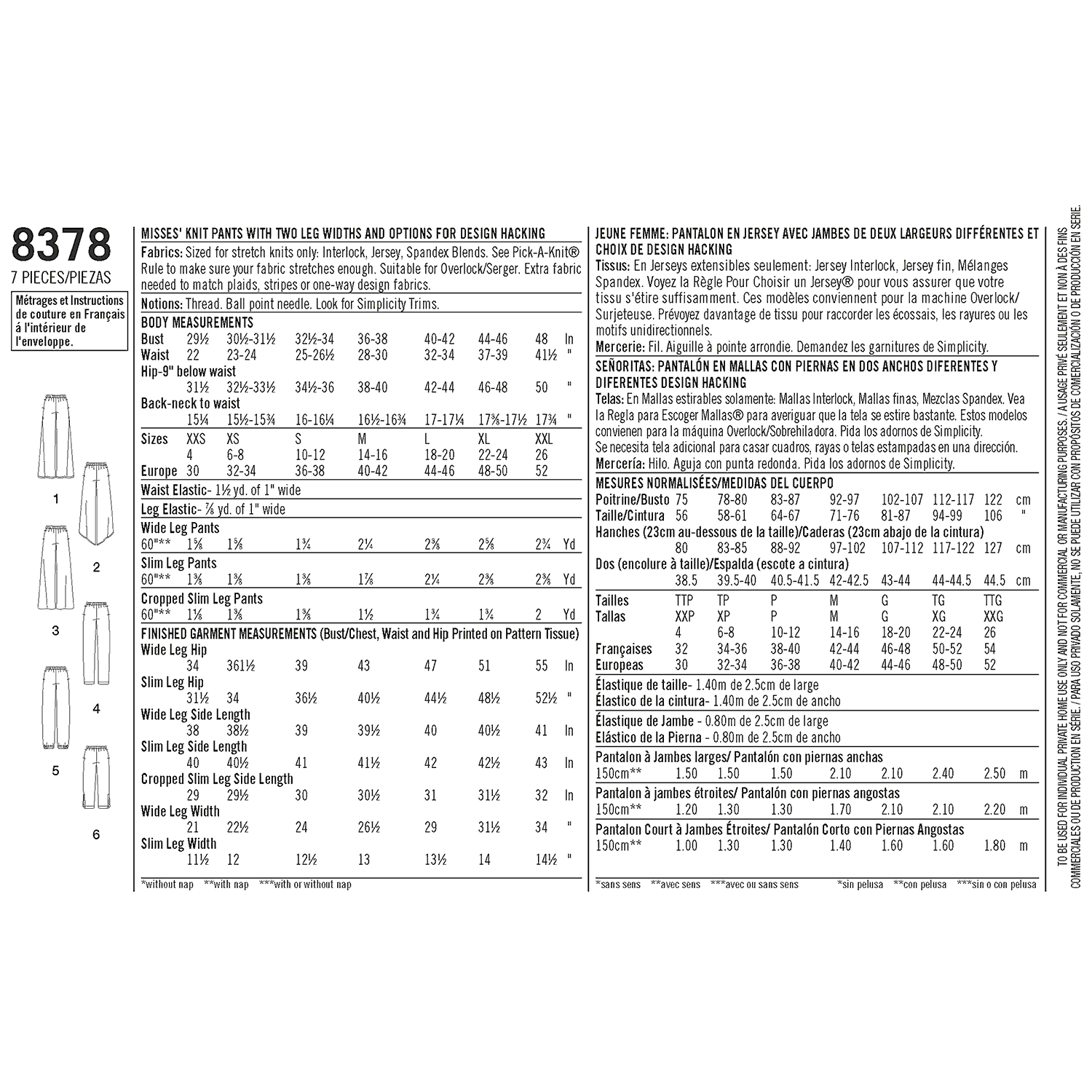 Simplicity’s pattern hack collection is designed to put the creativity in your hands. Starting from basic shapes use these patterns and instructions to create unique pieces and build your perfect wardrobe. We present several options but challenge your creativity to look for other unique ways to hack the patterns. See how far you can take it. Pattern is designed to work with stretch knit fabrics. Also see other patterns to hack 8375 knit dress, 8376 knit top, 8377 knit cardigan