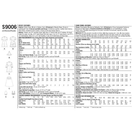 S9006 Misses’ Halloween Costumes. Misses’ Costumes. Themed dresses have back zipper fastening. Sleeve style variations. Pattern includes view B, pointed hat, view C cape and over-bodice.