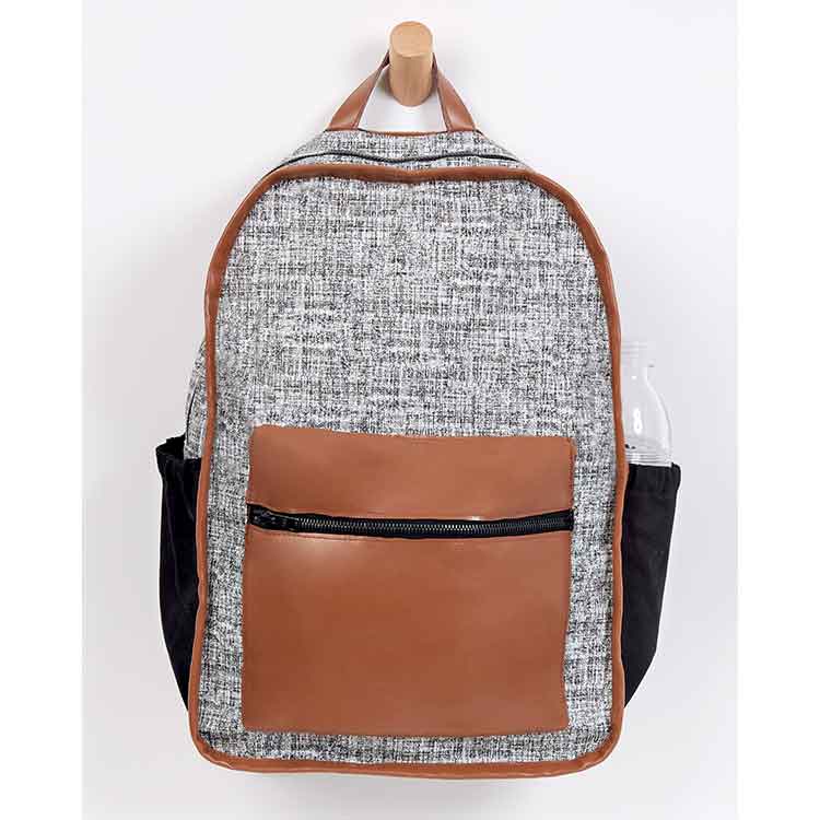 16″ tall backpacks have double zip closure, faux leather binding, roomy water bottle pockets and can be made in fabric or clear vinyl. Cosmetic case, hand sanitizer and lip balm keychain holders included. Average.