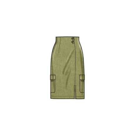 Slim or flared high waist skirts come in two lengths and feature back zipper, side seam pockets and optional slide buckles or buttons. Views A and B have a front slit and back darts. EASY-TO-SEW
