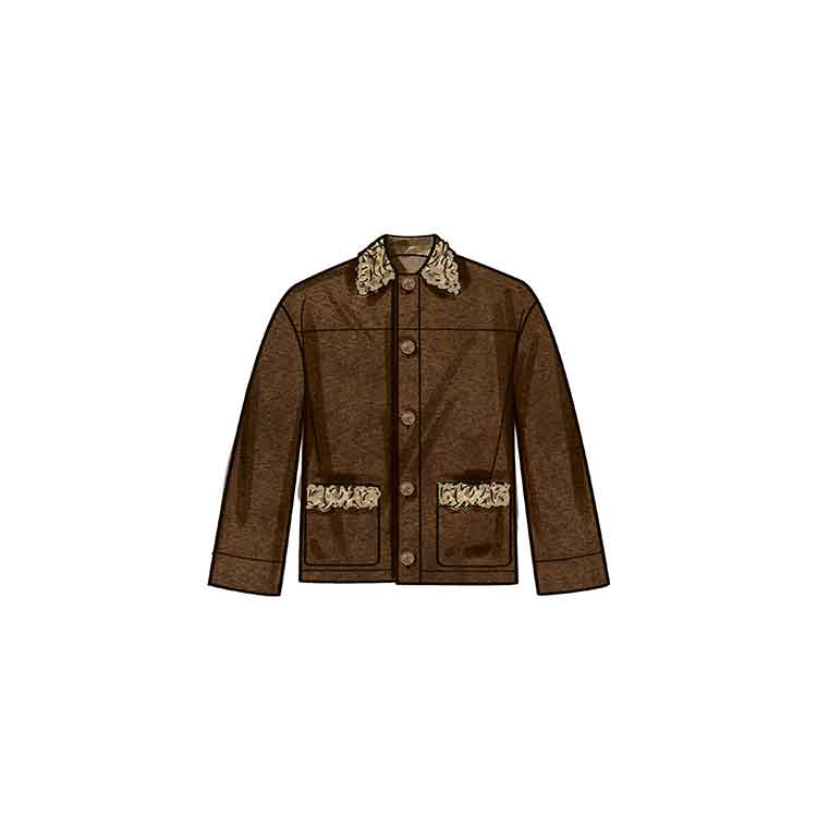 Matching jacket, vest, hat and crossbody bag for boys and men to wear! Jacket and vest have front button closure, front pockets and spread collar. Crossbody bag features slide buckle, clip closure and zippers. EASY-TO-SEW