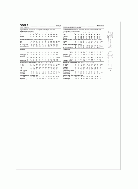 Misses’ Jumpsuit with snaps or button closure at the center front has pleats at the waist, long sleeves with cuffs, back bodice yoke, front pockets and choice of tapered or wide leg pant options.