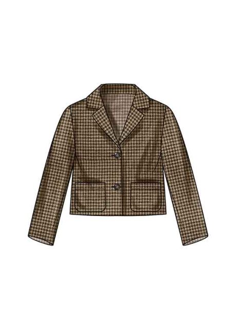 Relaxed fit lined jacket for children and girls sized 3 to 14 has front patch pockets and two length variations. Sewing level: AVERAGE.