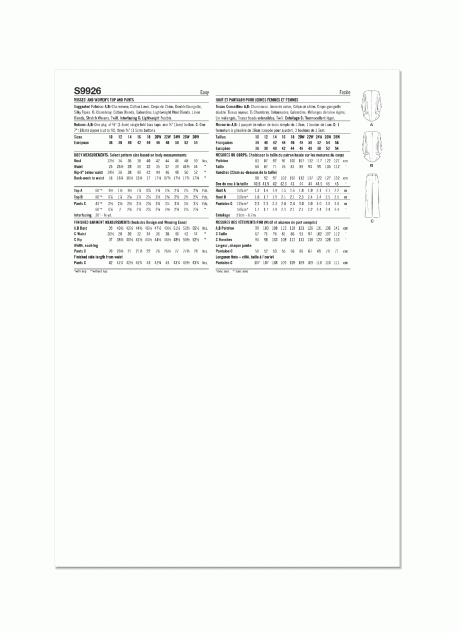 Crew neck tops with cape element have three-quarter sleeves, high-low hem and keyhole back opening with button closure. Floor length pants have front pleats, side seam pockets, front fly zipper and waistband with belt loops and button closure. Fabric suggestions: A,B: Charmeuse, Cotton Lawn, Crepe de Chine, Double Georgette,
