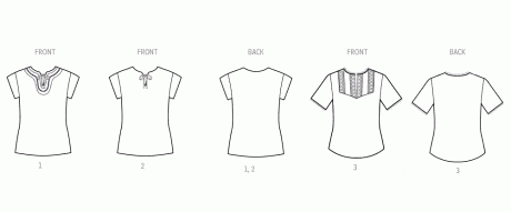 Vintage Simplicity 1970’s pullover tops sewing pattern. Misses pullover tops sized for stretch knits only. One-yard tops: each top takes 1 yard or less of 60″ fabric. V. 1 or 2 top with armhole bands and optional rick-rack trim has front slash opening fastened with shoe lace. V. 3 with short set-in sleeves and shirt tail hem is trimmed with ribbon and eyelet edging. Authentic Vintage Reproduction. Stretch Knits only. See Pick-A-Knit Rule. Not suitable for bonded knits. Sewing level: VERY EASY.