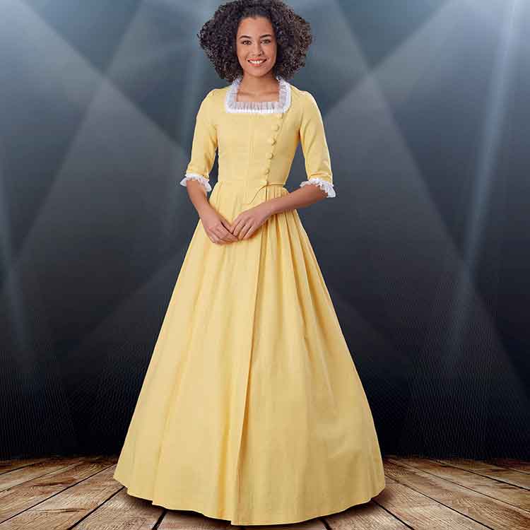 Simplicity Sewing Pattern S9251 Misses’ Costumes. 18th century-inspired costumes get a modern twist. Corseted boned tops with elbow length sleeves & trim options zip up the back with ease. Full pleated skirt finishes the look with swing & sass.