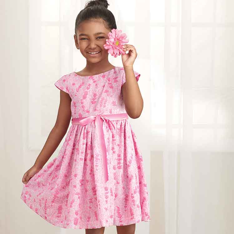 Children’s gathered skirt dresses have lined bodice (waist or below waist) and back zipper.