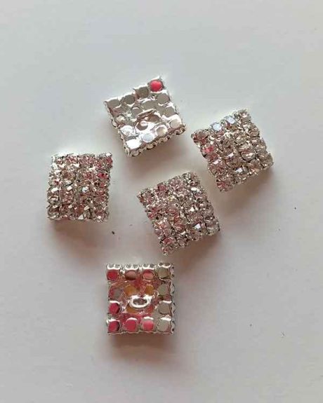 Sparkly square diamante shank buttons to transform a plain dress or jacket. Clear crystal on silver mount. 23mm.