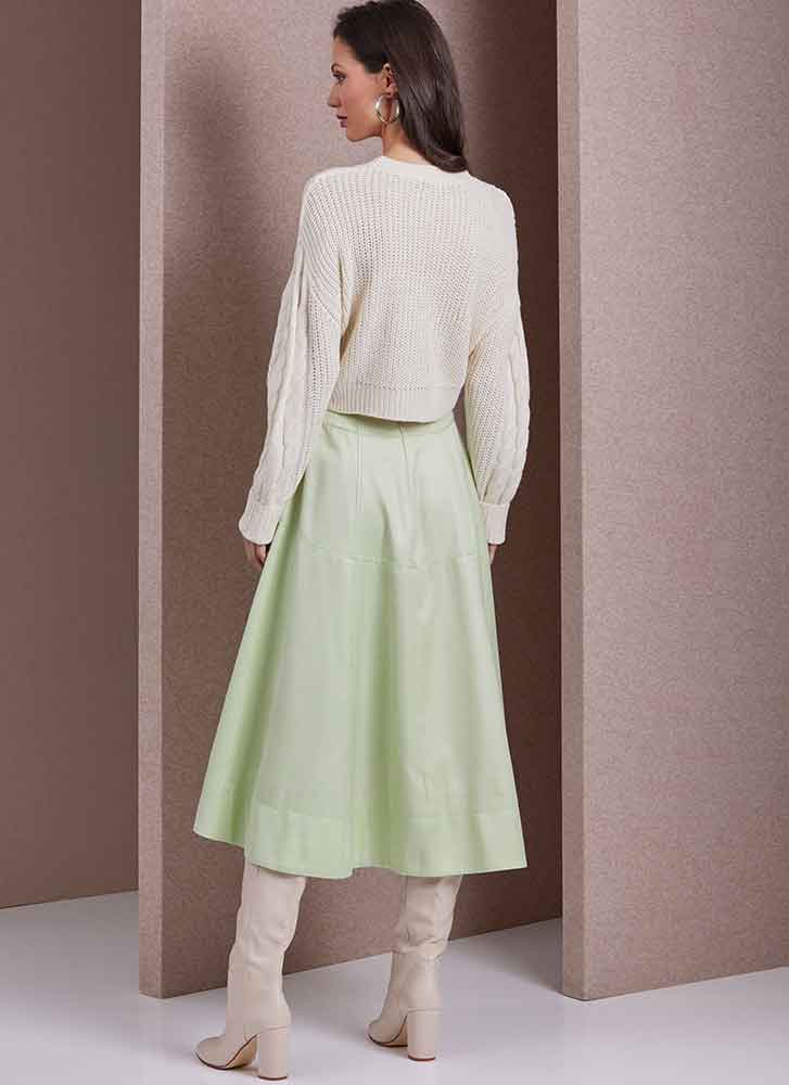 Skirt and culottes have waist facings, invisible back zipper, topstitching, side seam pockets and hem facings. Denim, Linen Blends, Twill, Wool Blends. Lining: Lining Fabric. Interfacing: Lightweight Fusible. Sewing level: EASY.