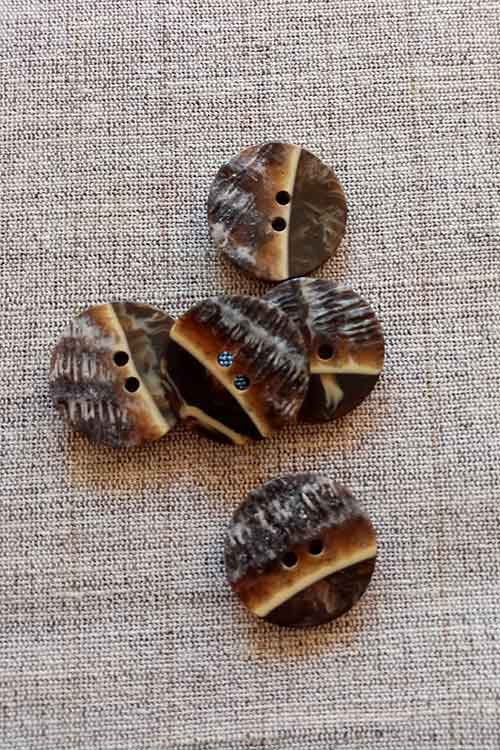 These vintage 2-hole horn buttons have a lovely texture and would be fabulous on knits or tweeds. 26mm. Limited stock.