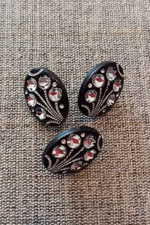 Aren’t these just lovely? Couldn’t resist them. Add a touch of vintage glamour to an evening outfit – a velvet jacket maybe, or just to add a bit of bling to a little black dress, or a clutch bag, or … 21mm x 15mm approx. Sold individually. Price per button.