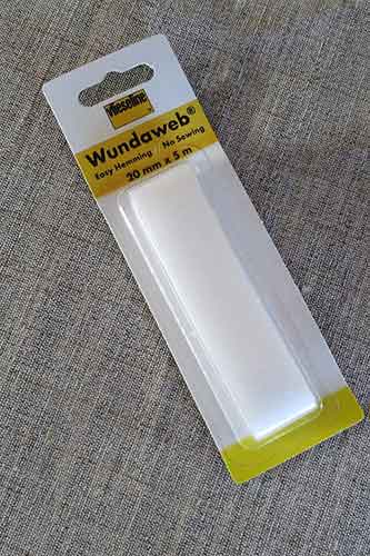 For fast and easy iron fixing of hems. Press on firmly step by step using a damp cloth. Machine washable at 60 degrees. Dry cleanable.